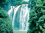 霧島神宮から北へ5km、湯之野温泉の近くで霧島川の上流に位置する。水量は多く、断崖を落ちる様は迫力に満ちている。見学には足場の悪い急な階段を500mくらい降りることに。滝の音が次第に大きくなり、下から見上げることができる。紅葉の季節は滝は特に美しく映える。 |