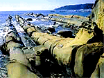 蜂の巣のような岩場が海沿いに続く奇勝 |