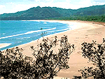 約1500mにわたる花崗岩が砕けた白い砂浜。足摺半島の東側の付け根付近。陽光まぶしい紺碧の大平洋とのコントラストが鮮やかで、打ち寄せる波の音が響く。アカウミガメの産卵場所として、また天然のハマグリが生息する貴重な場所。約5万本もの松が茂る白砂青松の浜で風光明媚。キャンプやサーフィンに人気。国道321号線沿いに標識が出ている。 |