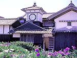 1887(明治20)年に当時の庄屋・畠中源馬が、農作業をする人々のために自宅の屋根に設置した。時計は独学で学んび、分銅や歯車などの部品も全て手作り。時計と白壁、安芸瓦が田園地帯にマッチして美しい姿。内部は見学できない。国の登録有形文化財。