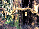 八坂神社境内にあり、樹齢300年ともいわれる大杉。南北二股に分かれ、それぞれ南大杉、北大杉と呼ばれている。南大杉は樹高約60m、北大杉は樹高約57m。2株は根元で合着しており、夫婦杉とも呼ばれる。国の特別天然記念物。 |