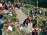 秋葉神社大祭として行われ、先払い天狗面を先頭にして、神輿つき役者やホラ貝を響かせて集まってくる役者など総勢200人程の行列が約3kmの山道を早朝から夕方にかけてゆっくりゆっくりねり歩く。村の若者2人が長さ7mもの鳥毛棒を空中高く投げあう「鳥毛ひねり」がクライマックス。毎年2月11日に開催。土佐三大祭りに数えられ、県の保護無形文化財。 |