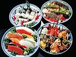 土佐料理といえば、皿鉢料理。有田焼や九谷焼などの大きな絵皿に、旬の新鮮な魚介類や野菜を盛った豪快な料理。めいめいが取り分けて食べる。鰹のたたき皿鉢や刺身皿鉢、寿司皿鉢に加え、揚げ物や煮物、焼物を盛った組物皿鉢、さらには組物皿鉢と刺身皿鉢と寿司皿鉢を合わせた盛込皿鉢などの種類がある。 |