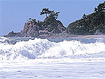 月の名所として知られる弓状の白砂青松の浜 |
