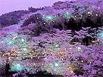 ぼんぼり点灯で浮かぶセンダイヤザクラ |