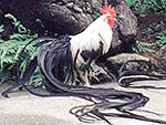 オナガドリは江戸時代に現在の南国市で改良されたニワトリ。天然記念物に指定された1923(大正12)年には尾の長さが2m弱だったが、その後の飼育でさらに長くなり現在では10m以上のものも。愛鶏家達の手で飼育されているが、この施設では観光客も見ることができる。オナガドリは国の特別天然記念物。(写真はオナガドリのイメージ) |