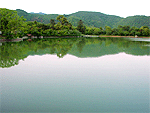 古くより多くの人に愛された洛西の別天地。周囲約1kmで、遍照寺山の影が水面に映る様が美しい。観月の名勝地でもあり、多くの歌人に詠われた。「名月や池をめぐりて夜もすがら」と芭蕉が詠んだ句碑がある。周辺は歴史的風土保存地区で、古き嵯峨野の面影が大切にされている。 |