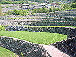 白猪南麓に広がる棚田。積まれた石垣は120段にも及び、使用された石の数は約300万個、総延長を計算する約120kmにもなるという。城壁よりも迫力がある程のボリューム感。国道166号線から道標が出ており、棚田の奥に駐車場もある。日本の棚田百選。 |