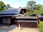松阪城跡近く、城跡の石垣の上から見下ろせる。元は紀州藩士たちの邸宅で、現在も19軒の武士屋敷が残る。ほとんどは子孫が生活しており石畳の道を散策するのみだが、松阪城側の1軒のみ公開されている。 |