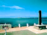 岬の先端からは、左手に伊是名島や伊平屋島、北の海上には与論島が遠望できる。この岬と与論島でかがり火を焚き、米軍統治時代に祖国復帰を訴えた海上集会を記念して立てられた祖国復帰闘争の碑がある。背後には、琉球の祖先アマミキヨが沖縄の島々を創ったときに最初にこしらえたという琉球神話が残る霊地・辺戸岳がそびえる。 |