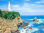 岬は海食台地になっており、断崖の下には無数の岩礁が見られる。この岩礁に砕ける荒波が印象的。海岸沿いに遊歩道が整備されており、豪快な海を堪能できる。岬の先端には、高さ約32mのレンガ造りの灯台が建つ。イギリス人技師リチャード・プラントンの設計で1874(明治7)年に建造されたもの。灯台を登ると、ぐるっと太平洋に囲まれた雄大な眺望が得られる。 |