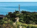 先端には1929(昭和4)年に建てられた伊良湖岬灯台が航海の安全を守り続けている。恋路ヶ浜側の駐車場からは約400m、海岸沿いと中腹に散策路がある。岬の右側は波静かな三河湾、左側は黒潮が流れる太平洋、正面には伊良湖水道を望む景勝地。日本の灯台50選。 |