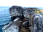 隆起サンゴ礁の断崖が続く沖縄本島最北端 |