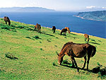 海抜225mの灯台と野生馬、ソテツ北限自生地
