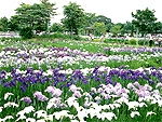 遺跡を彩るアヤメ、カキツバタ、ハナショウブ |