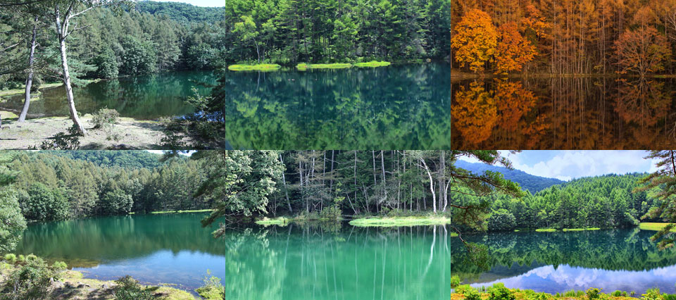 奥蓼科の山中、標高1,500m程にある人工池。画家・東山魁夷の作品「緑響く」のモチーフになったことで名高い。周囲はカラマツ林で、春の新緑や夏の深緑、秋の黄葉、冬の雪など、表情豊かな自然を水面に映す。池の水は酸性が強く、微生物が生息しづらく濁りにくい。池畔には降りれないが、池沿いの県道に歩道が整備されている。駐車場やトイレもある。