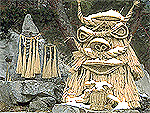 北アルプスの展望地に鎮座する藁の道祖神。県道沿いの地区入口にあたり、病が村に入らぬよう道祖神を祀ったのが始まりとされる。威厳ある大きな顔だがユーモアのある表情が魅力的。長野冬季オリンピック開会式に登場した。1月7日は神面装飾道祖神祭り。神面装飾は午後1時から午後4時、どんど焼きは午後6時より。新しい神面が祀られ、1年間役目を全うした神面は燃えて自然に帰る。 |