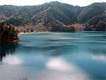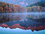 観光道路から離れ、針葉樹の原生林に囲まれた静寂の地。火山によるせき止め湖で、水面に志賀山や赤石山などの影を映す。強酸性で魚はいない。大沼入口の駐車場から4km、四十八池などと共に湖沼群をめぐる格好のハイキングコース。 |