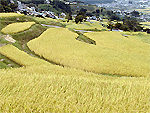 善光寺平の眺望、棚田に浮かぶ田毎の月。山の斜面にあるJR姥捨駅付近から約2千枚もの棚田が広がる。棚田に水が張られた5〜6月の満月の日、棚田に月が映る光景が知られ田毎の月と呼ばれている。眼下に流れる千曲川や善光寺平の展望が良く、夜景も美しい。千曲川展望公園や姨捨公園、姥捨SAなどの展望ポイントがあるが、姥捨駅周辺など様々な角度からの風景が美しい。国の名勝。日本の棚田百選。 |