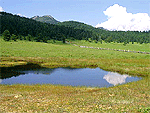 湯の丸高原と高峰高原の間に位置する。この付近は、地形や気候の影響で、里山から高山に至る多くの動植物が同じエリアで生息。高山植物も宝庫で、レンゲツツジやアヤメ、コマクサなどの群落が見事。三方ヶ峰や見晴岳などを巡るハイキングも人気。湿原までは、湯の丸高峰林道沿いの駐車場から徒歩約15分。 |