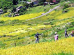 小諸市の北、浅間山の西に続く高原。小諸からのびるチェリーパークラインの最高地点・標高1968m車坂峠からは眺めが広がる。小諸市街や佐久平を見下ろし、八ヶ岳や富士山などの山々を見渡せる大パノラマ。夏のニッコウキスゲ群落など高山植物の花々が美しい。ここを起点に、池の平湿原や黒斑山、高峰山などへのトレッキング、湯の丸高原などへの高原ドライブも楽しめる。 |