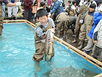 【 鮭のつかみ獲り大会 】 新潟県上越市(旧名立町) |