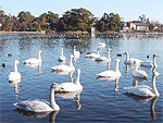 | 白鳥や周囲に咲く花など季節の魅力にふれる風致地区。白鳥は11月末頃から飛来し、3月下旬頃まで越冬する。他の水鳥も多い。池の周辺に咲く桜やあじさい、蓮など季節の花が彩る。桜の花が咲く4月中旬には「弁天潟さくらまつり」で、観桜茶会や歌と踊りの広場、屋台などの催しが行われて賑わう。ボンボリによるライトアップで、水面に桜が映り昼とは違った美しさを見せてくれる。 |