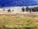 長者原温泉郷を中心に8km四方に広がる。九重山北麓特有の陰影の美しい山肌が見られる。春は九重連山をピンク色に染めるミヤマキリシマ、秋の紅葉とススキ、冬は霧氷と、四季を通じて自然を楽しめる。クヌギ林や湿原の中を長者原自然研究路が通り、季節によりミズゴケやモウセンゴケなど、この地ならではの珍しい植物が見られる。長者原にはビジターセンターがあり、動植鉱物などが展示され映写室も。高原北側の鳴子川渓谷には、女滝や震動滝がかかる。 |
