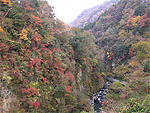 別名十三曲と呼ばれ、鳴子川の両岸2kmに渡って断壁が直立する。深淵や瀑布など渓谷ならではの景観が際立ち、紅葉など四季ごとの景観が美しい。上流には日本の滝百選に選ばれた震動の滝がある。この滝は、落差83mの男滝と落差98mの女滝の2本の滝からなる。 |