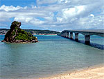 古宇利島は周囲約8kmの円形の島。隆起サンゴ礁で形成され、海岸段丘が発達している。特産品のウニやモズクをはじめ漁業が盛ん。この島と屋我地島(名護市)を結ぶのが長さ1960mの古宇利大橋、無料で渡れる橋としては日本一の長さを誇る。さらに奥武島を経由し本島とつながっている。 |