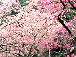 本部半島にそびえる八重岳は標高453m、沖縄県で2番目に高い。頂上まで約4kmの登り道には約7000本の寒緋桜があり、1月中旬に開花する。濃いピンク色が特徴で、1本の木でも開花時期は1ヶ月近くある。日本で一番早い「桜まつり」が行われる。また、頂上には展望台があり、天気がいいと伊是名島や伊平屋島などを望める。 |