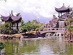 1992(平成4)年に開園した中国式庭園で、中国の福州市と那覇市の国際友好都市10周年と那覇市市制70周年記念の事業。600年程前に福建省から移住があり中国とのゆかりの深い那覇市久米にある。面積は8500平方m。園内は、明、穏、華の三部空間で構成され、福州の名勝や福州独特の洞爺紋などの建築物が池の周辺に再現されている。福洲から取り寄せられた材料で造られている。異国情緒にあふれ、都市の中にあって、樹木や草花も美しい。 |