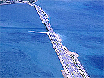 真っ青な海の中を一直線に走る爽快な道路 |