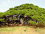 1839(天保10)年に植えられた琉球松で、横に横にと伸びた見事な枝ぶり。高さは約5mながら5本の枝が波打つように横へ伸びている姿が美しい。枝の長さは約12mにもなる。自然につくられた芸術作品で、巨大な盆栽のよう。剪定は一切加えられていないという。国の天然記念物。 |