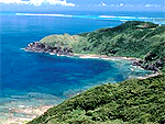 久米島北東部。バンタとは断崖のことで、展望地は高さ約200m。断崖と真っ青な海が続く爽快な景色で、天気次第で海上にのびる白く長いリーフ(浅い海面下の砂浜)・はての浜や慶良間諸島、粟国島などが望める。一周道路沿いで手軽に風景を楽しめる。 |