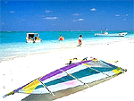 久米島の東海岸。波穏やかな白い砂浜が約2km続いている。干潮時には沖まで歩けるほど遠浅。海水浴場はもちろん、シュノーケルやウィンドサーフィンなどマリンスポーツで人気。周辺には、ホテルや民宿、ダイビングショップなどが並ぶ。日本の渚百選。 |