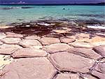浜一面に並ぶ亀の甲羅のような菱形の岩 |