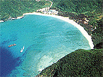 渡嘉敷島の南西部、真っ青な海に約800mの白い砂浜が弧を描く見事な景観で、南国の離島旅情も満点。ダイビングやスノーケルなどにはもちろん人気が高い。各種レンタルやシャワーなどの設備もあり、民宿やペンション、ショップなども多い。 |