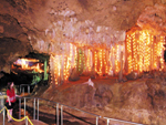 多様な形の鍾乳石、音と光の体験型鍾乳洞 |