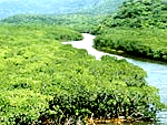 西表島北部の浦内川河口付近で、マングローブ林が広がっている様子を道路からでも一望できる。また、ここの保護区域の中にはミニモチシダ群落、ヤエヤマヤシ自生地もある。国指定の天然記念物。国指定の天然保護区域。 |