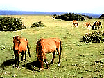 平久保崎へ続く草原状の山並や左右の大海原 |