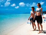 石垣島北部の西側、久宇良海岸。安良岳などの山々を背景に、自然のままの美しい海岸。真っ白な砂浜が続き、海は透明度抜群。海の底にある色とりどりのサンゴ群もよく見える。箱めがね、シーカヤック、ドラゴンボート、スノーケルツアー、ダイビングなどの体験メニューも。美しい海に夕日が沈む光景は息をのむほど。 |