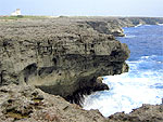 日本最南端の碑から東側へ約1kmに渡って続く高さ10数mの断崖海岸。琉球石灰岩が侵食されて形成されたもので、ここからは太平洋の雄大な景観が広がる。少し突き出た所が高那崎。岩礁に荒波が打ち砕ける豪快な風景を見下ろせる。海は透明度が非常に高く、目の覚めるようなマリンブルーの色彩に感動する。 |