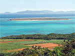 石垣島の中ほど、島が最もくびれた部分の近くにある。高台の展望台までの遊歩道沿いではハイビスカスの花がきれい。右に太平洋、左に東シナ海が広がり、島をとりまく珊瑚礁のリーフに白い波が砕ける様子がわかる。北側には島の最北端・平久保崎へ続く安良山やはんな岳がそびえている。 |