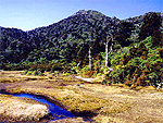黒味岳入口の標高1640mに広がる別天地。清らかな水が流れ、周辺にはビャクシンやヤクシマシャクナゲが自生、屋久杉の白骨樹も見られる。泥炭層を含む高層湿原の南限ともいわれ、空や山の緑は一段と鮮やか、この世とは思えない程の美しさ。 |