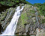 屋久島で規模、水量ともに最大、日本の滝百選。大雨の後は特に迫力があり、滝壷付近は水しぶきにおおわれる。滝壷へと近づくほどに滝の魅力が増してくる。島一周道路からわずか3m程で見学はとても楽だ。 |