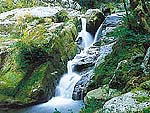 宮之浦川支流の白谷川上流で、シダや苔類が茂る照葉樹林の間に小滝が連続する渓谷と、屋久杉やモミ、ツガなどの巨木が茂る原生林を堪能できる。一度伐採された株から育った二代杉などを巡る比較的楽なひりゅうコースから、くぐり杉や樹齢300年の弥生杉まで行く本格的な原生林コースなど3つの原生林観賞コースが設けられている。森林整備協力金1人30円。また、この森から宮之浦岳への登山道も延びている。 |