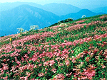 滋賀県と岐阜県の県境にそびえ、標高1377m。滋賀県内では最高峰。岐阜県の関ヶ原から全長約17kmの伊吹山スカイラインが通じ、駐車場から山頂まで徒歩約20分の楽々登山が可能。山頂からは、西に日本一広い湖・琵琶湖、東に国内屈指の広い平野・濃尾平野など、雄大な展望を満喫できる。また、貴重な高山植物の宝庫で、お花畑が美しい。駐車場から山頂へは3ルートの遊歩道コースが整備され、滋賀県側からは所要約4時間の登山道がある。 |