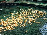 1878(明治11)年に設立された歴史ある国内初の県営水産研究施設。鈴鹿山脈・雲仙山麓の自然につつまれ、通年水温12度前後の清水を利用できる環境。場内には数多くの池が造られ、約160万匹ものニジマスをはじめ、アマゴ、イワナなどが飼育されている。また、本館やさかな学習館、休憩所などの施設があり、場内や近隣に鱒料理の店が点在。周辺の醒井渓谷は国の名勝。 |