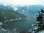 賤ヶ岳によって琵琶湖と隔てられたような周囲約6kmの湖。波静かで湖面に周辺の風景を映し出すため「鏡湖」とも呼ばれる。天女が水浴びに舞い降りたが羽衣をなくし帰れなくなった伝説が残る。戦国時代には賤ヶ岳合戦の激戦地となった。余呉湖と琵琶湖にのみ棲息するイワトコナマズをはじめ、ワカサギ、フナなど多くの魚が棲む。湖畔には、野外活動センターなどの施設があり、レンタサイクルやハイキングを楽しめる。 |